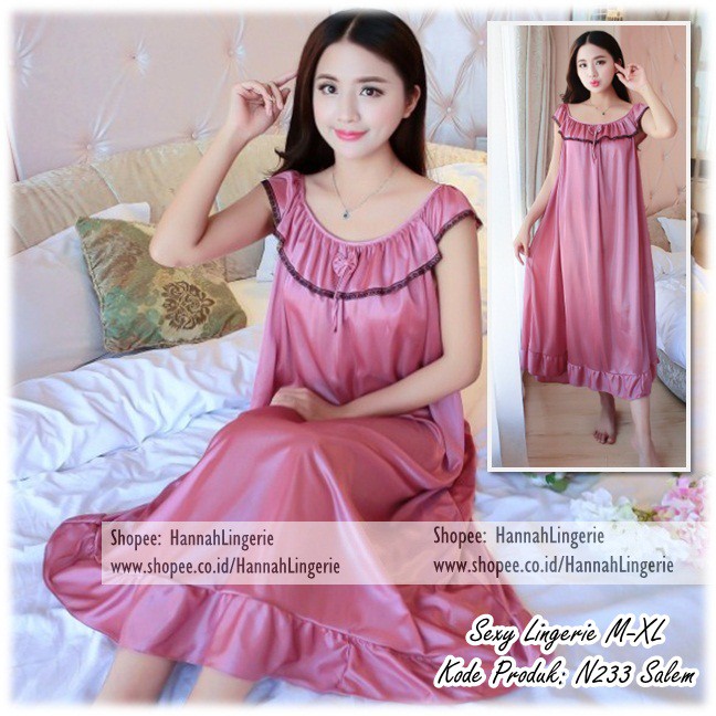 M L Xl Hannah Lingerie Original Satin Silk Lingerie Wanita Saten Baju Tidur Malam Pertama N233 Shopee Indonesia